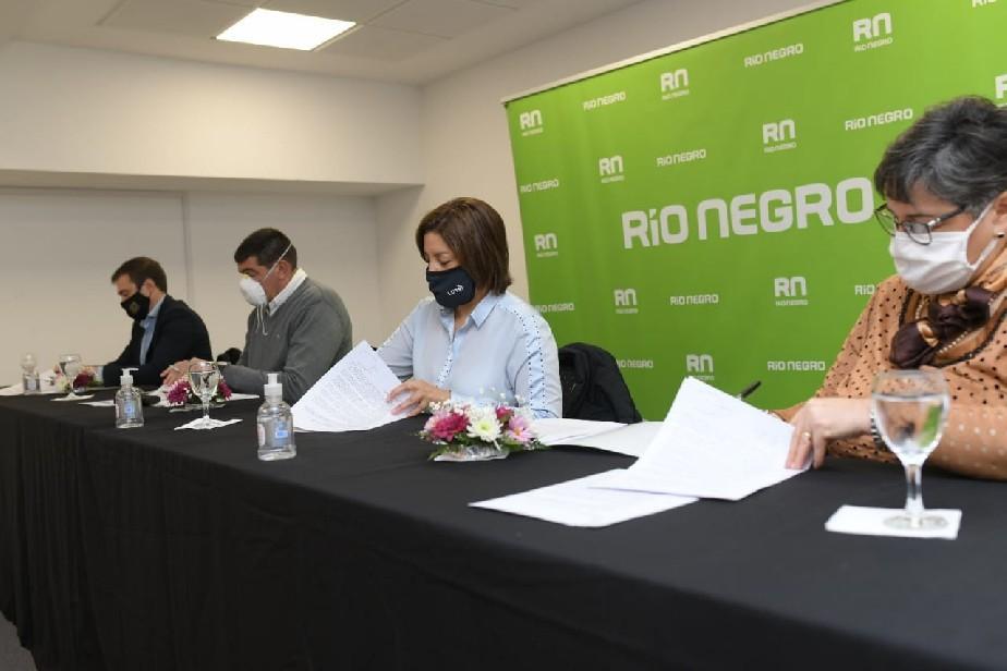 Los intendentes e intendentas de los Municipios de Cipolletti, Allen, Fernández Oro, General Roca, Ingeniero Huergo y Cervantes firmaron hoy con la gobernadora, Arabela Carreras, los convenios correspondientes para acceder a un crédito de asistencia financiera por COVID-19.