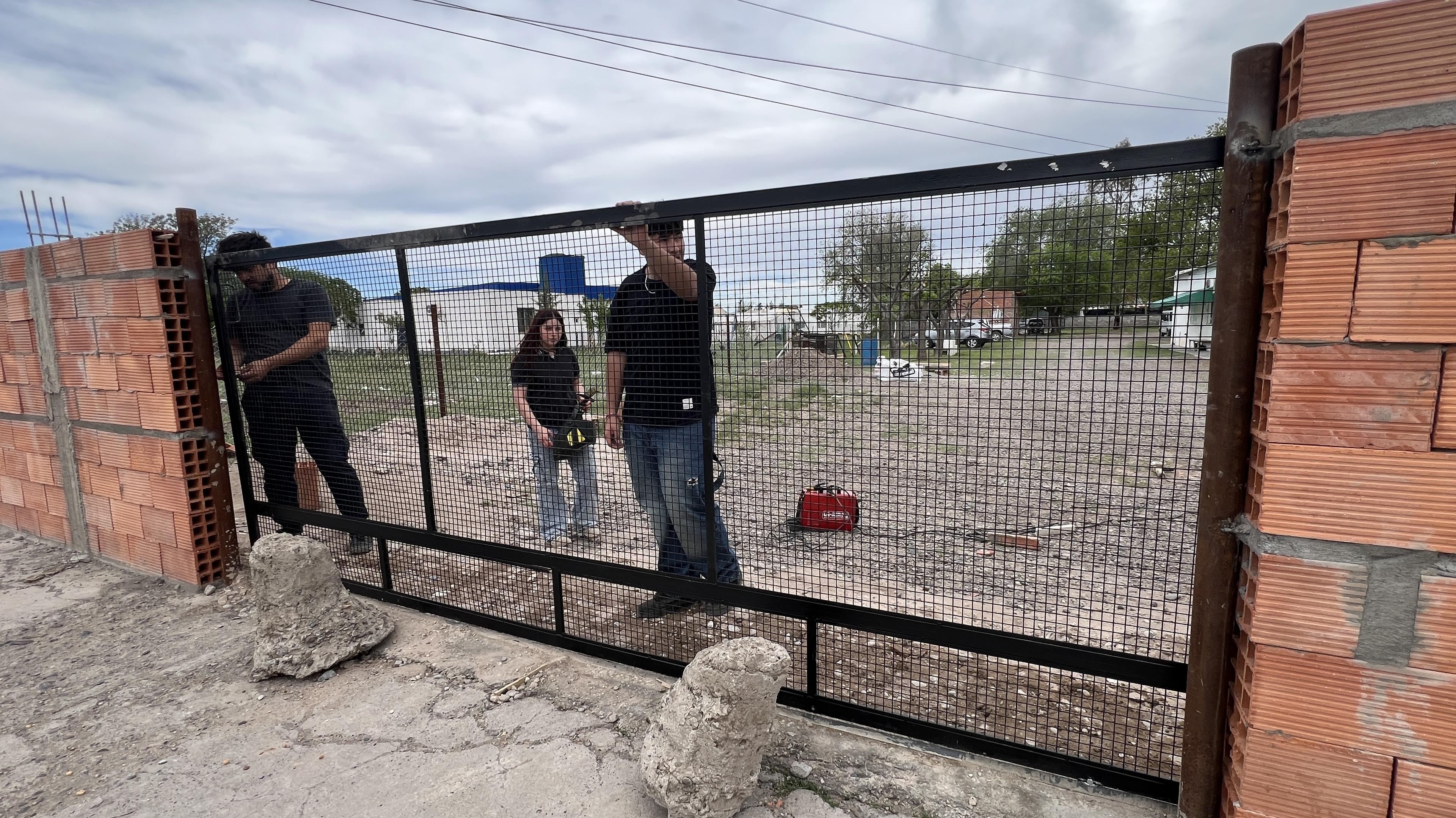 Estudiantes del CET 20 de Lamarque están culminando una importante obra comunitaria: la construcción del paredón perimetral del Hospital “Dr. Jorge Rebok” y la colocación de portones construidos en los talleres de la escuela.